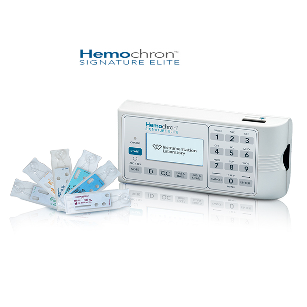 Linha Hemochron™ Signature Elite: Sistema de Microcoagulação de Sangue Total que realiza o teste TCA (Tempo de Coagulação Ativada ACT+ e ACT-LR para monitorização do efeito de concentrações altas e baixas de heparina), Tempo de Tromboplastina Parcial Ativada (APTT e APTT em Citrato), e Tempo de Protrombina.
