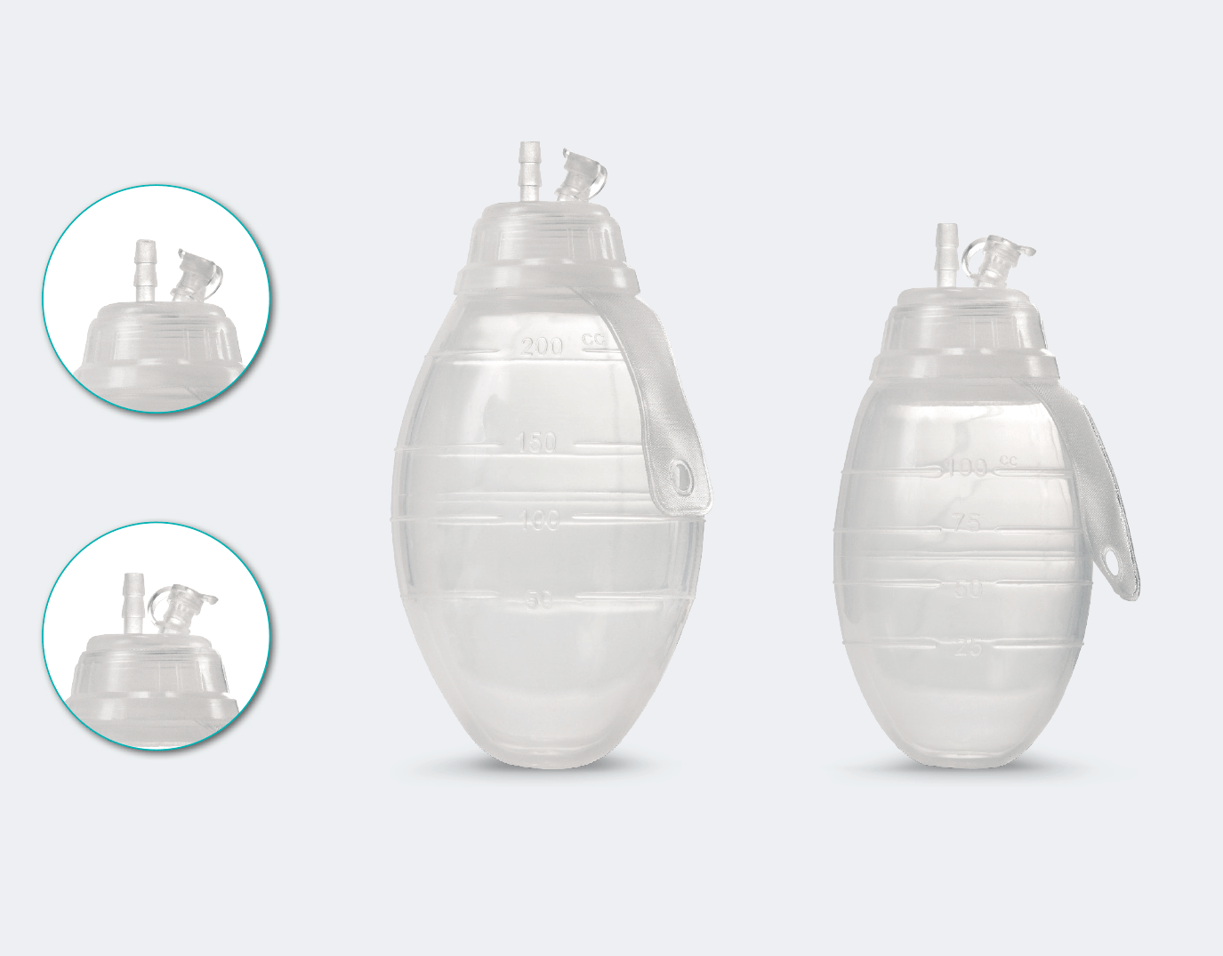 • A flexibilidade em silicone e a resistência permitem gerar pressão negativa para a aspiração.